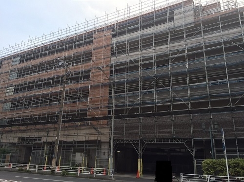 神奈川県の足場工事、枠組足場、クサビ式足場を主とした仮設足場工事を専門に承ります。お見積り・ご相談は無料!クサビ式足場の仮設工事は川崎総業株式会社にお任せください。