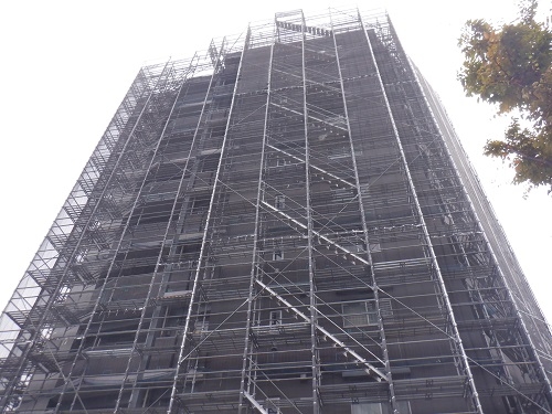 神奈川県の足場工事、枠組足場、クサビ式足場を主とした仮設足場工事を専門に承ります。お見積り・ご相談は無料!クサビ式足場の仮設工事は川崎総業株式会社にお任せください。