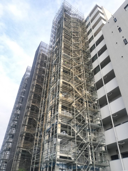 神奈川県の足場工事、枠組足場、クサビ式足場を主とした仮設足場工事を専門に承ります。お見積り・ご相談は無料!クサビ式足場の仮設工事は川崎総業株式会社にお任せください。