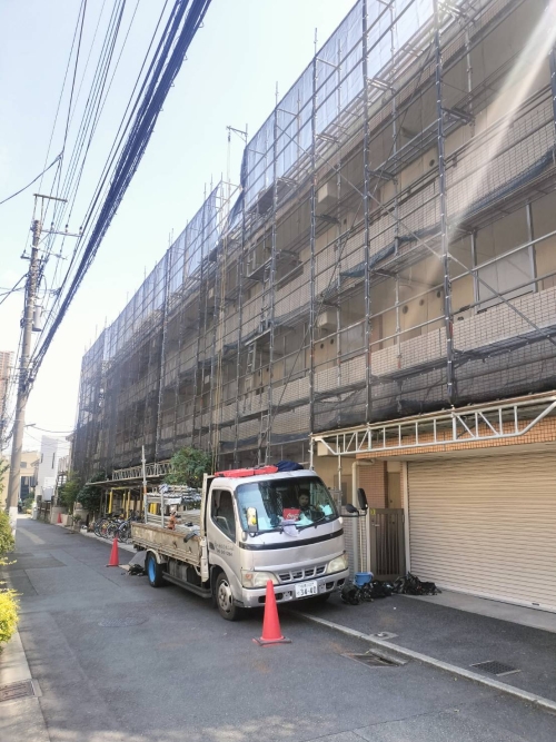 神奈川県の足場工事、枠組足場、クサビ式足場を主とした仮設足場工事を専門に承ります。お見積り・ご相談は無料!クサビ式足場の仮設工事は川崎総業株式会社にお任せください。