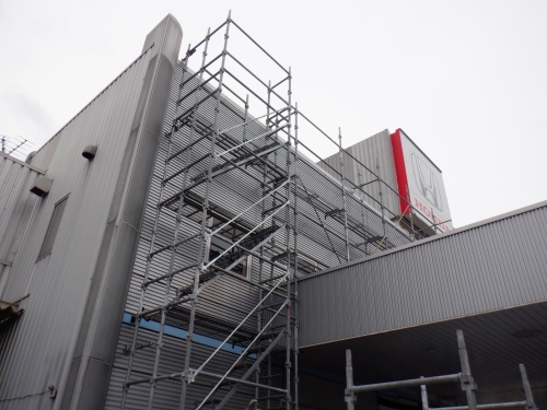 神奈川県の足場工事、枠組足場、クサビ式足場を主とした仮設足場工事を専門に承ります。お見積り・ご相談は無料!クサビ式足場の仮設工事は川崎総業株式会社にお任せください。